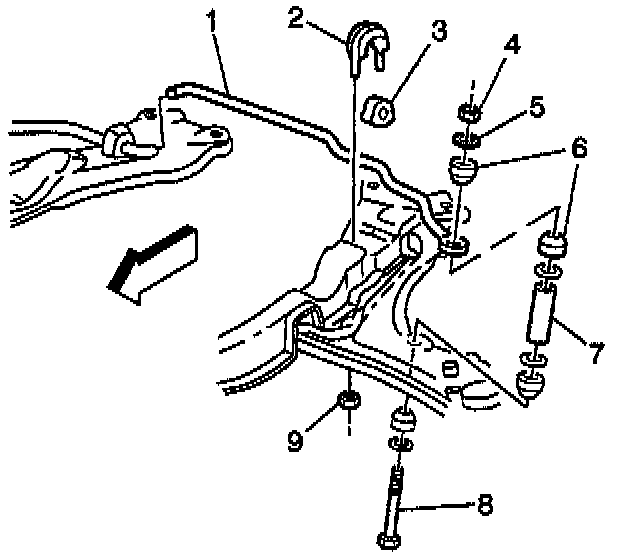 1. Remove the nut (4) attaching the stabilizer link to the stabilizer shaft (1).