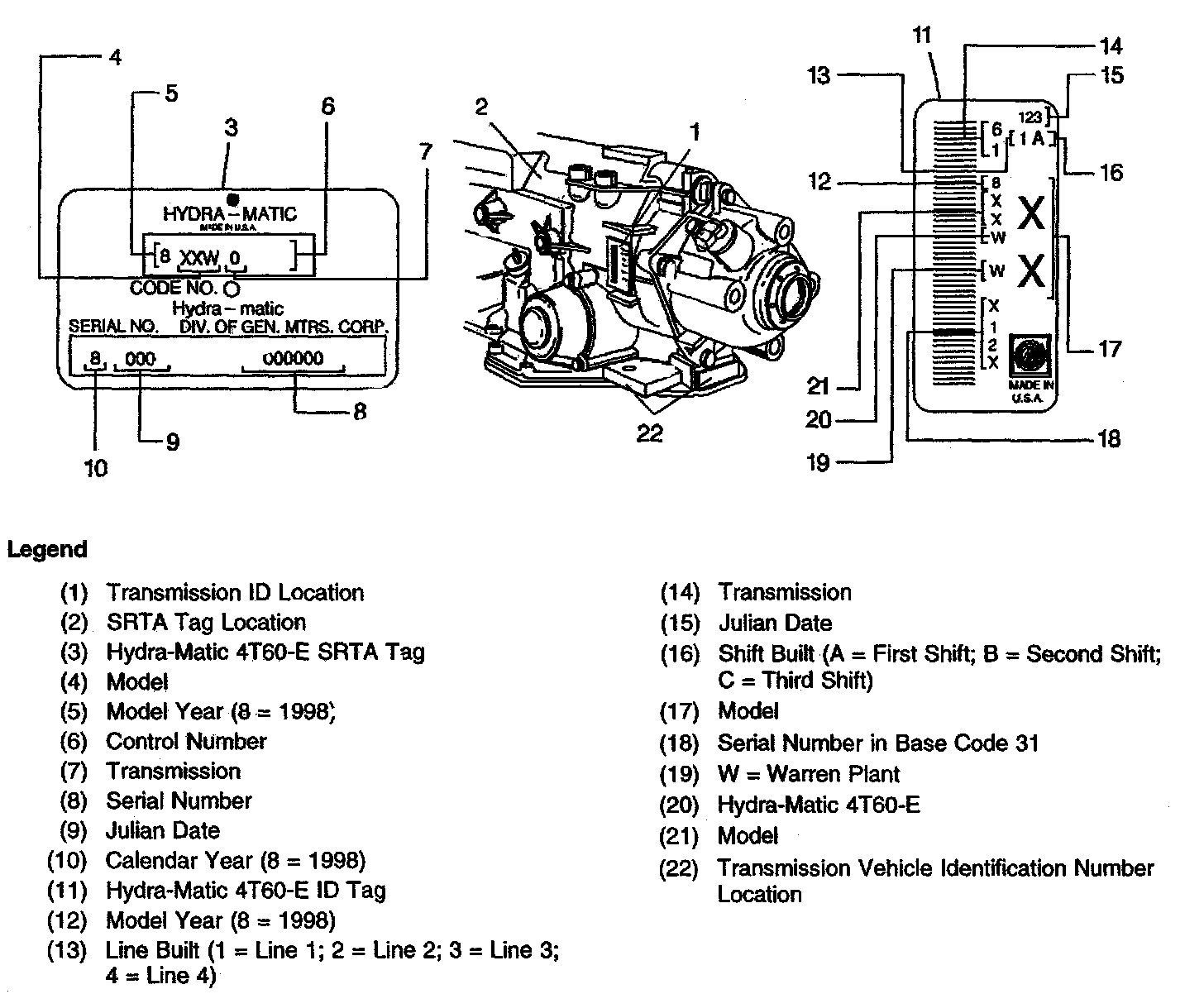 4T60-E Transaxle ID And Unit Number Location: