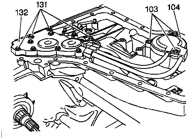 1. Remove the four indicated accumulator cover bolts (131) from the 1-2 and 2-3 accumulator cover (132).