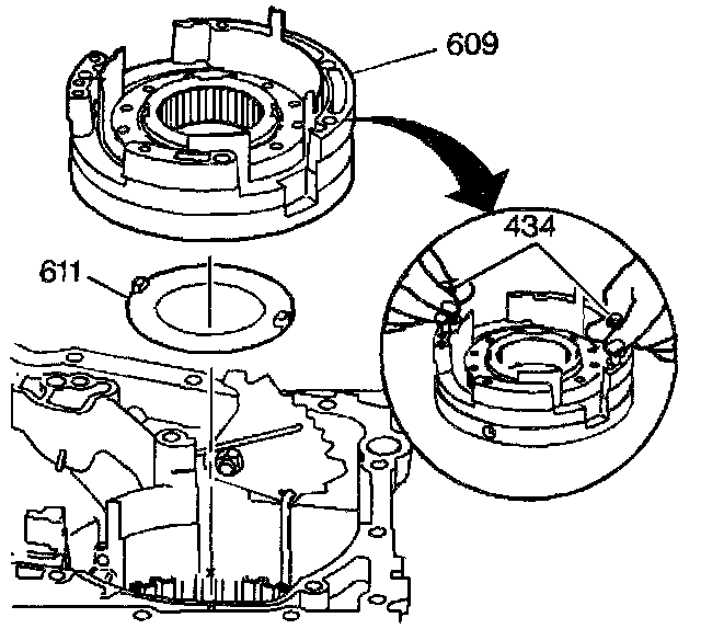 3. Remove the thrust washer (611) from the second clutch housing. The washer may be stuck to the support assembly.