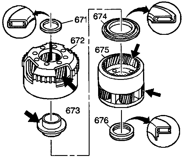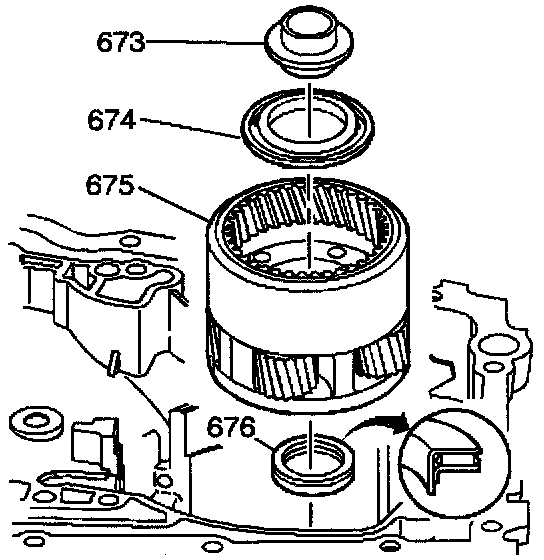 5. Install the reaction carrier (675) into the case and rotate the carrier so that the pinions engage the reaction sun gear.