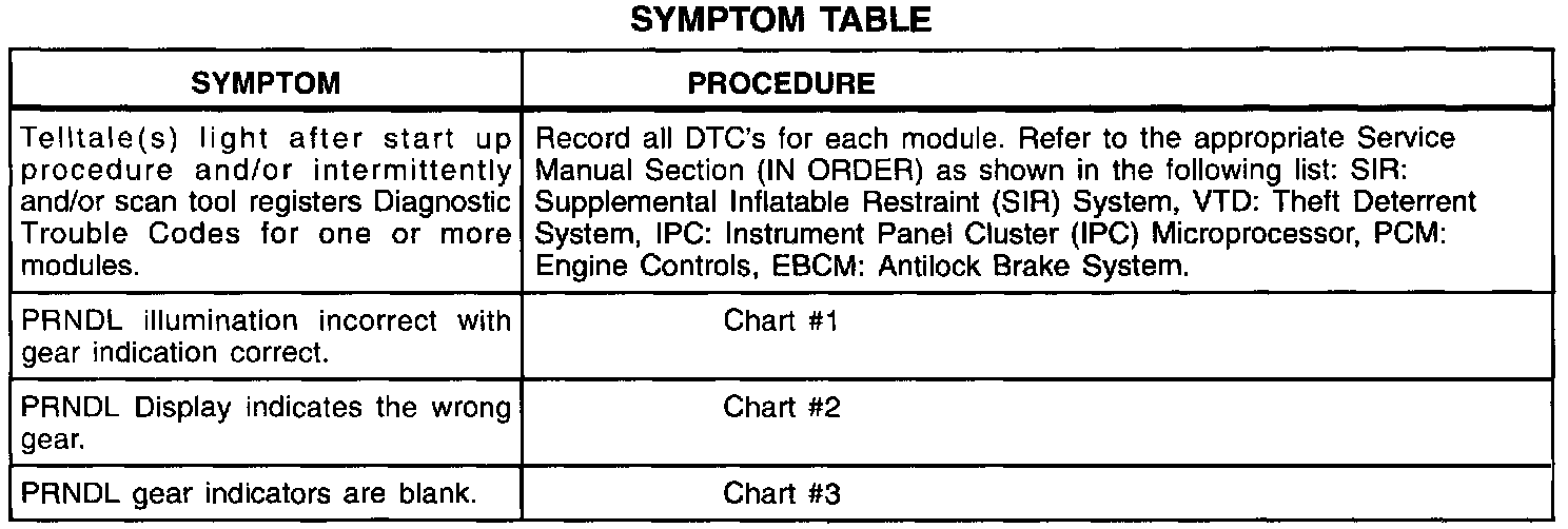 Symptom Table: