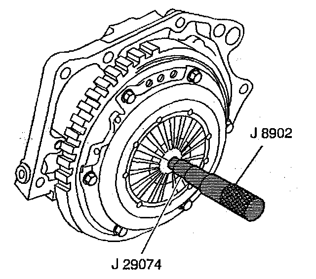 2. Install the J 29074 in order to support the clutch cover to the flywheel assembly.