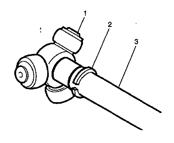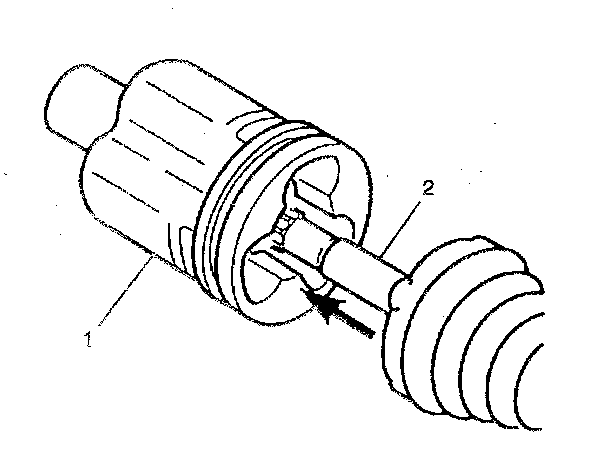 12. Slide the housing (1) over the tripot joint spider assembly on the axle shaft.