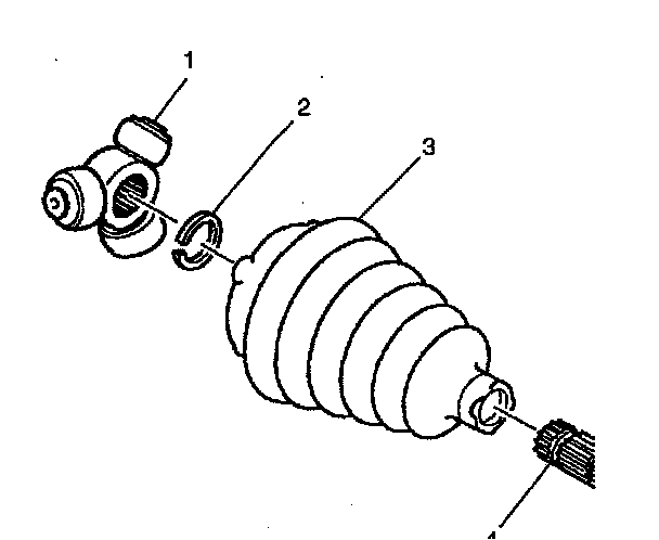 9. Slide tripot joint spider (1) assembly off of the axle shaft (3).