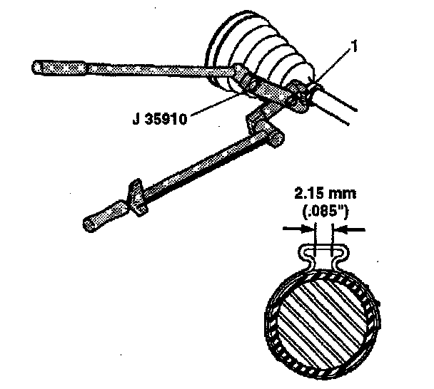 4. Crimp the seal retaining clamp (1) using J 35910 to 136 Nm (100 lb ft).