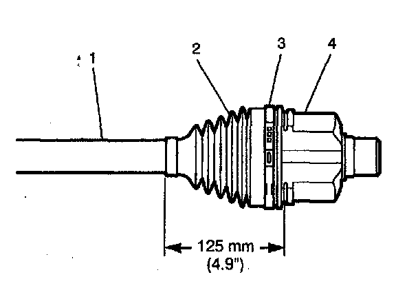 7. Slide the spacer ring (3) and tripot joint spider (2) back on axle shaft (4).