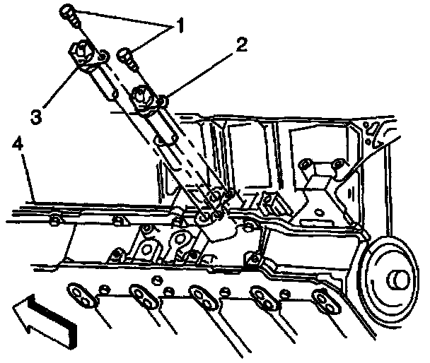 3. Install the crank sensor (2 or 3) and the retaining bolt (1).