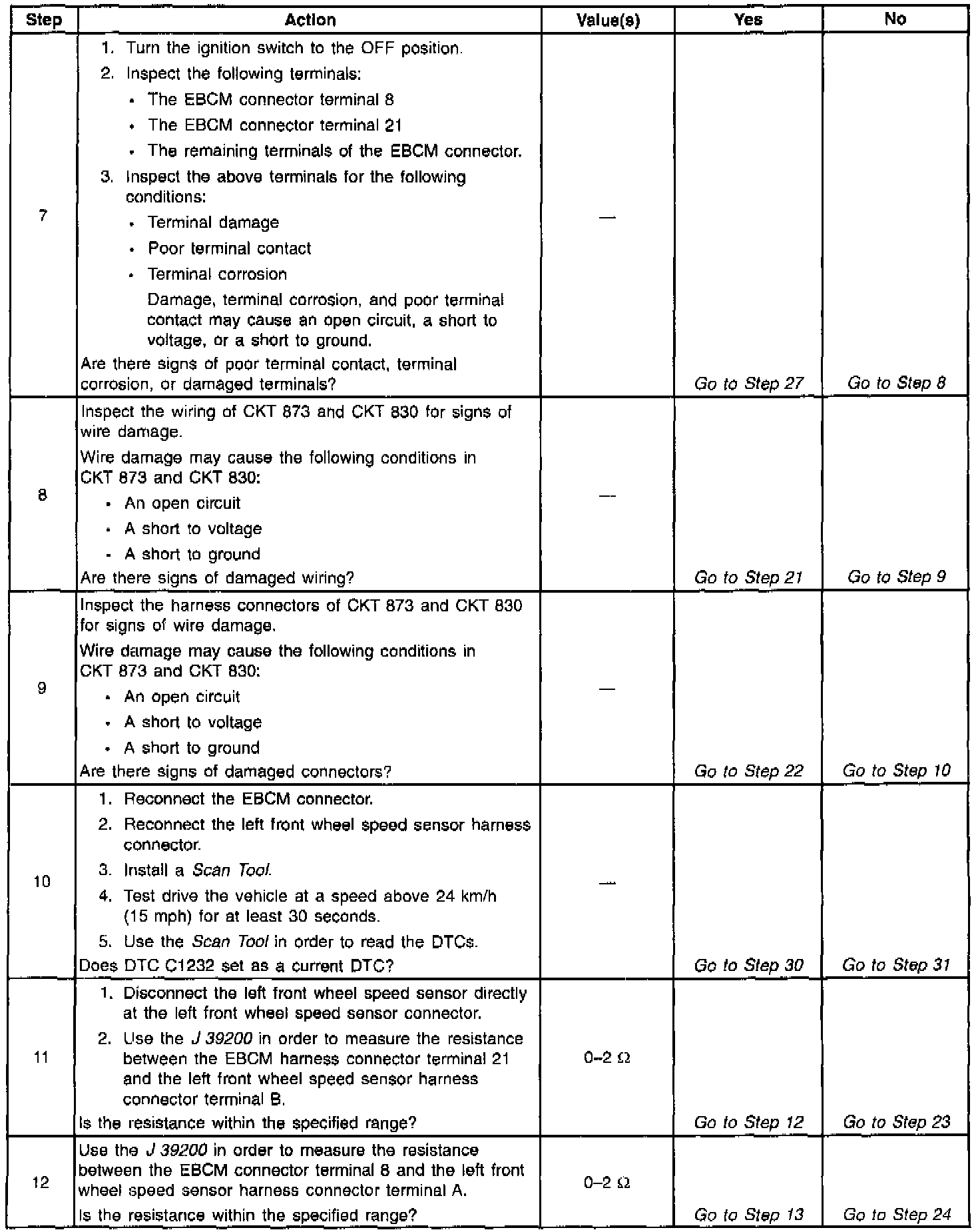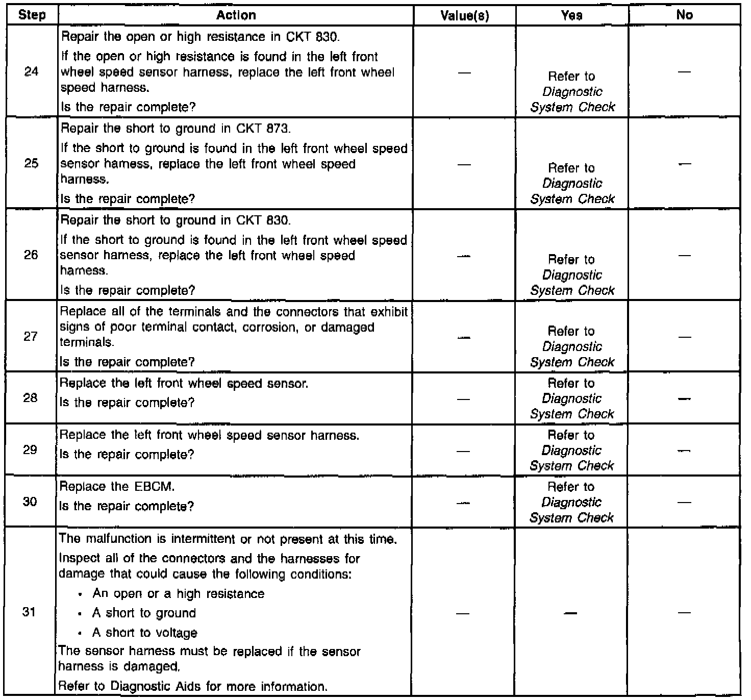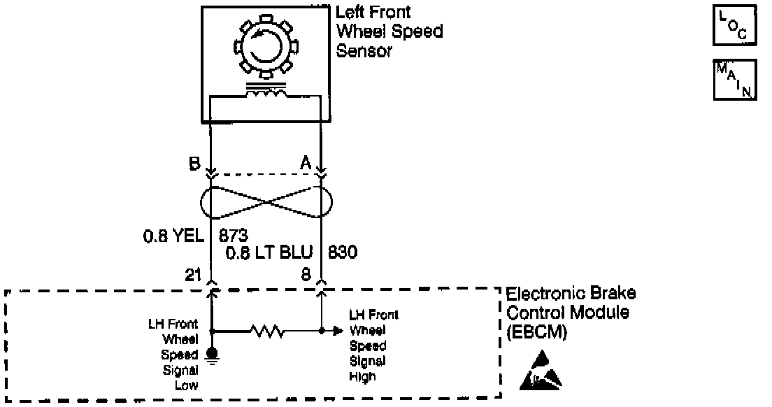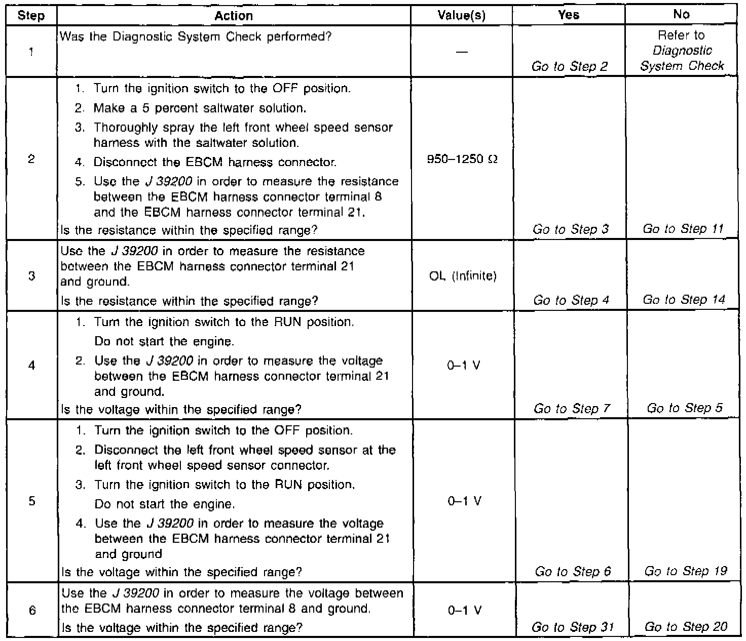 A malfunction exists if either of the left front wheel speed sensor circuits are open or shorted to voltage or ground.