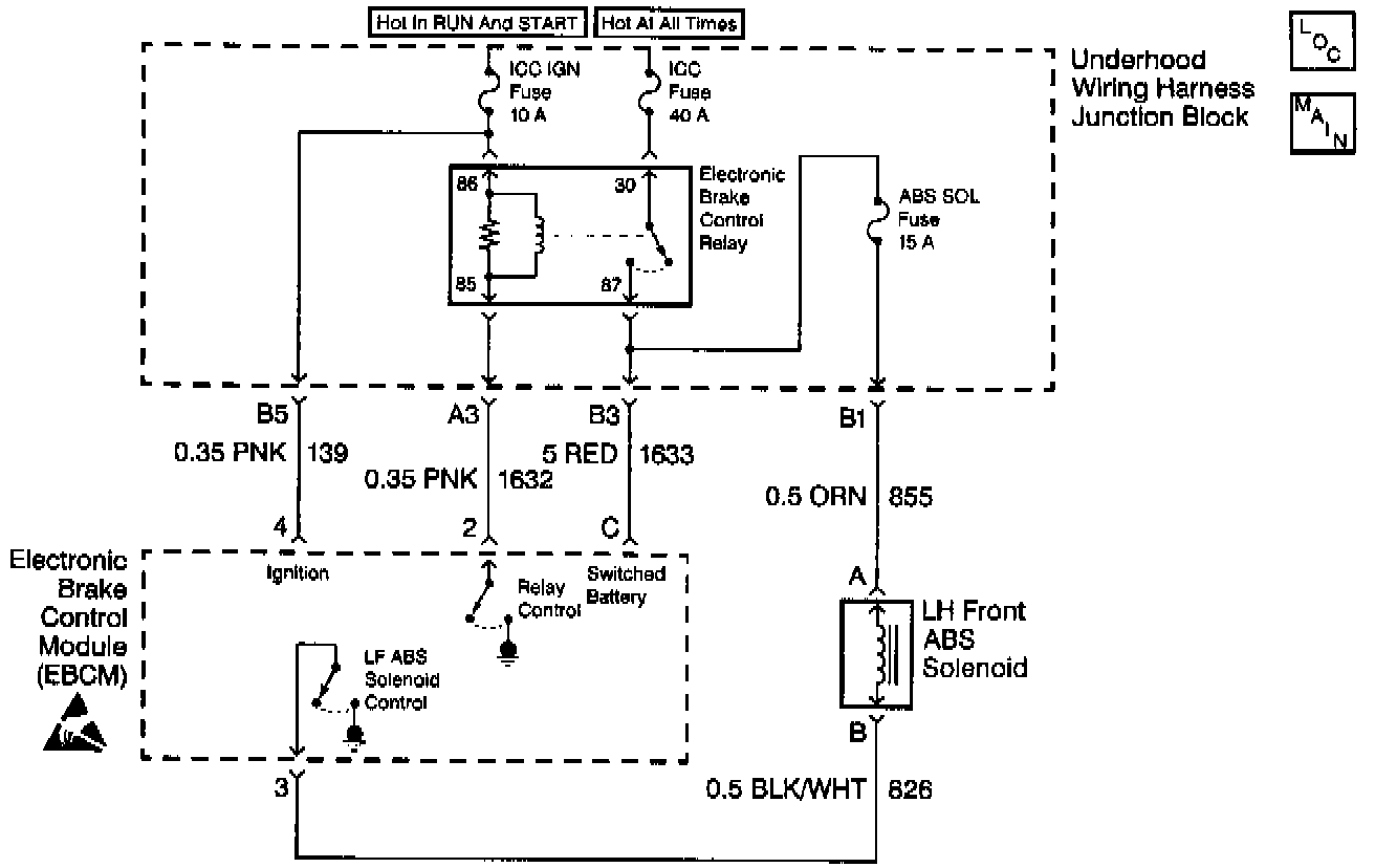 - The solenoid valve is always energized due to a short to ground in the solenoid valve circuitry between the Electronic Brake Control Module (EBCM) and the brake solenoid valve.