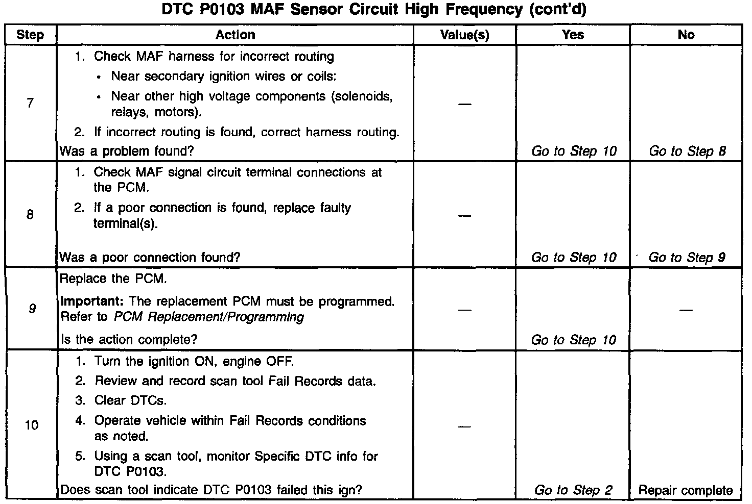 If DTC P0103 cannot be duplicated, the information included in the Fail Records data can be useful in determining vehicle mileage since the DTC was last set.
