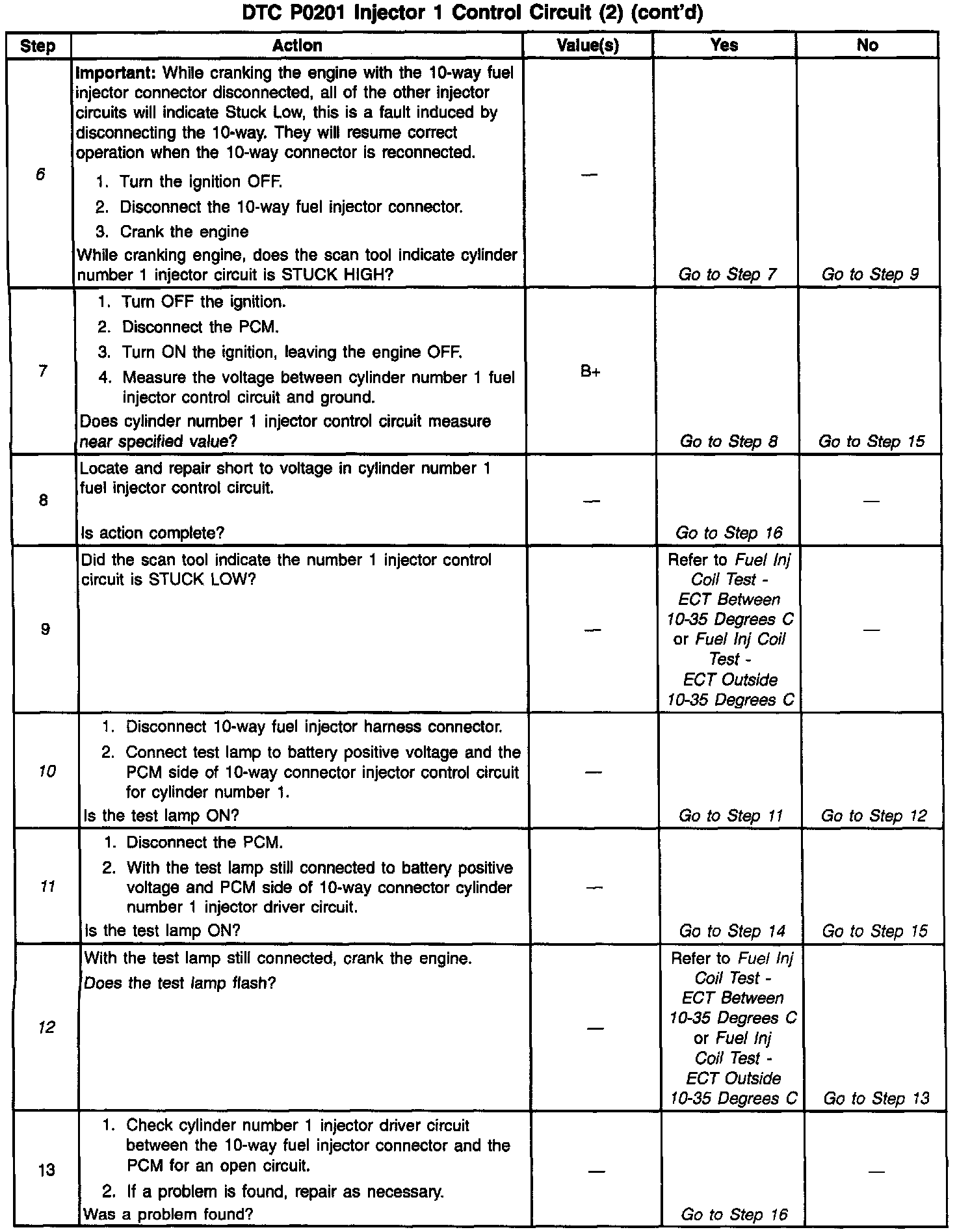 5. If the scan tool indicates STUCK LOW there is an open or a short to ground on the fuel injector driver circuit.