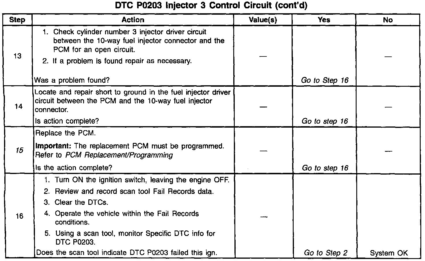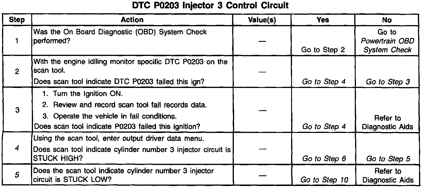 The PCM controls the fuel injector control circuit using a Multi Function Driver (MFD). The MFD has the ability to detect an electrical malfunction. If an electrical malfunction is detected, the MFD signals the PCM to set DTC P0203.