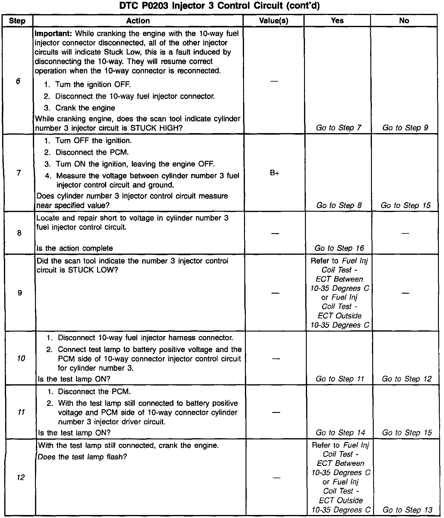 5. If the scan tool indicates STUCK LOW there is an open or a short to ground on the fuel injector driver circuit.