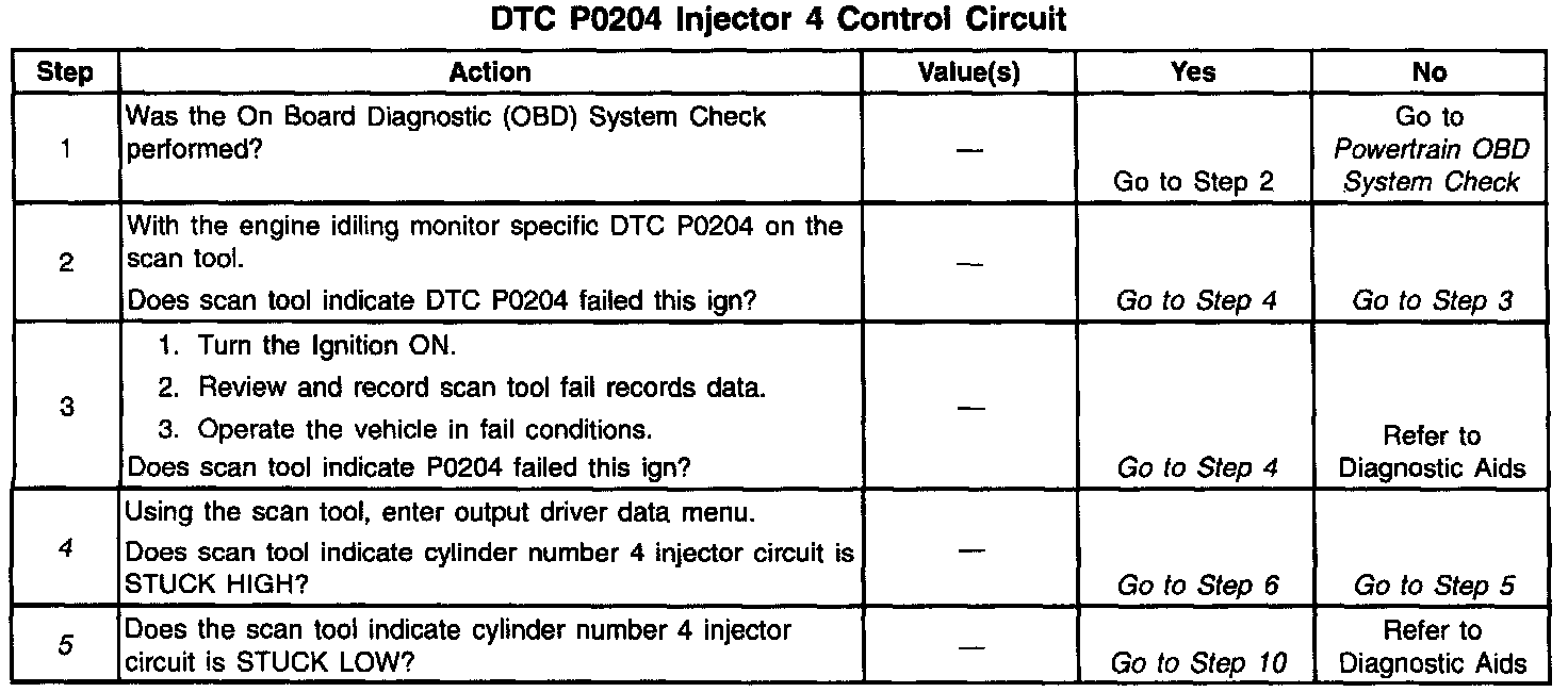 The PCM controls the fuel injector control circuit using a Multi Function Driver (MFD). The MFD has the ability to detect an electrical malfunction. If an electrical malfunction is detected, the MFD signals the PCM to set DTC P0204.
