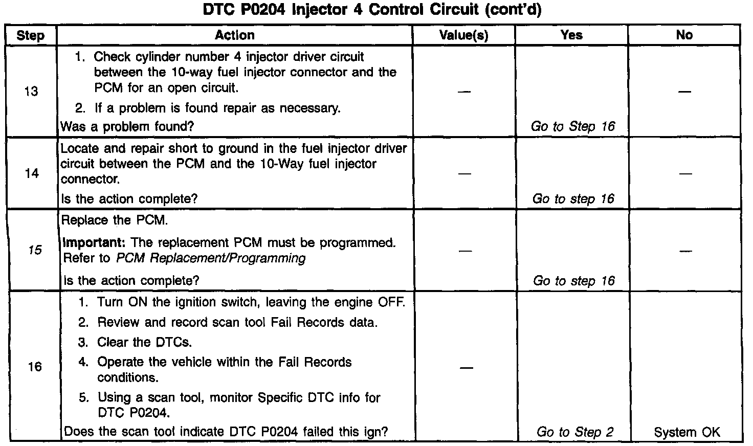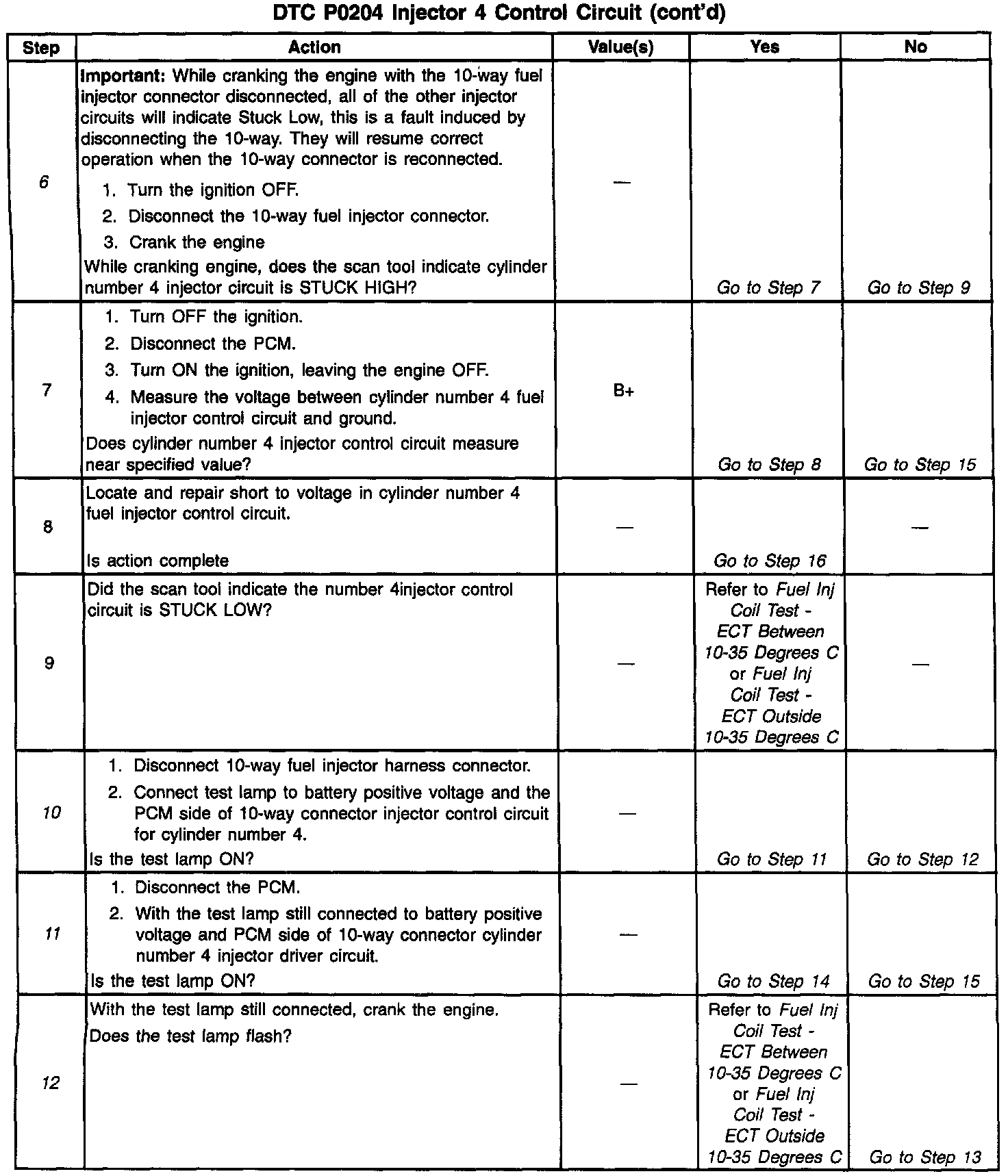 11. The fuel injector in this circuit will need to be checked after the short to ground is repaired or after the PCM is replaced.
