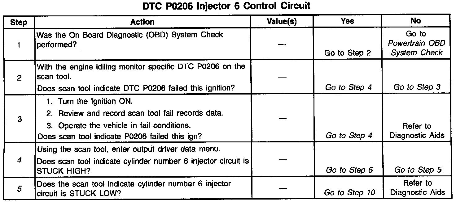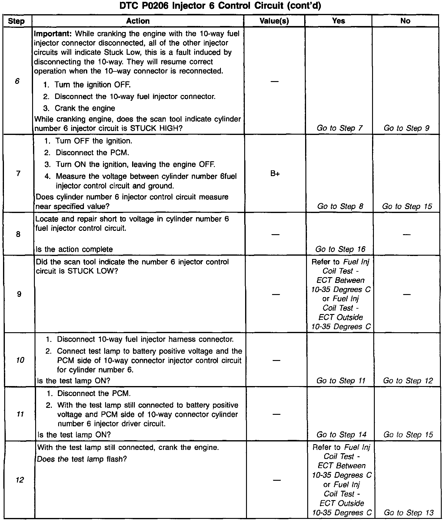 5. If the scan tool indicates STUCK LOW there is an open or a short to ground on the fuel injector driver circuit.