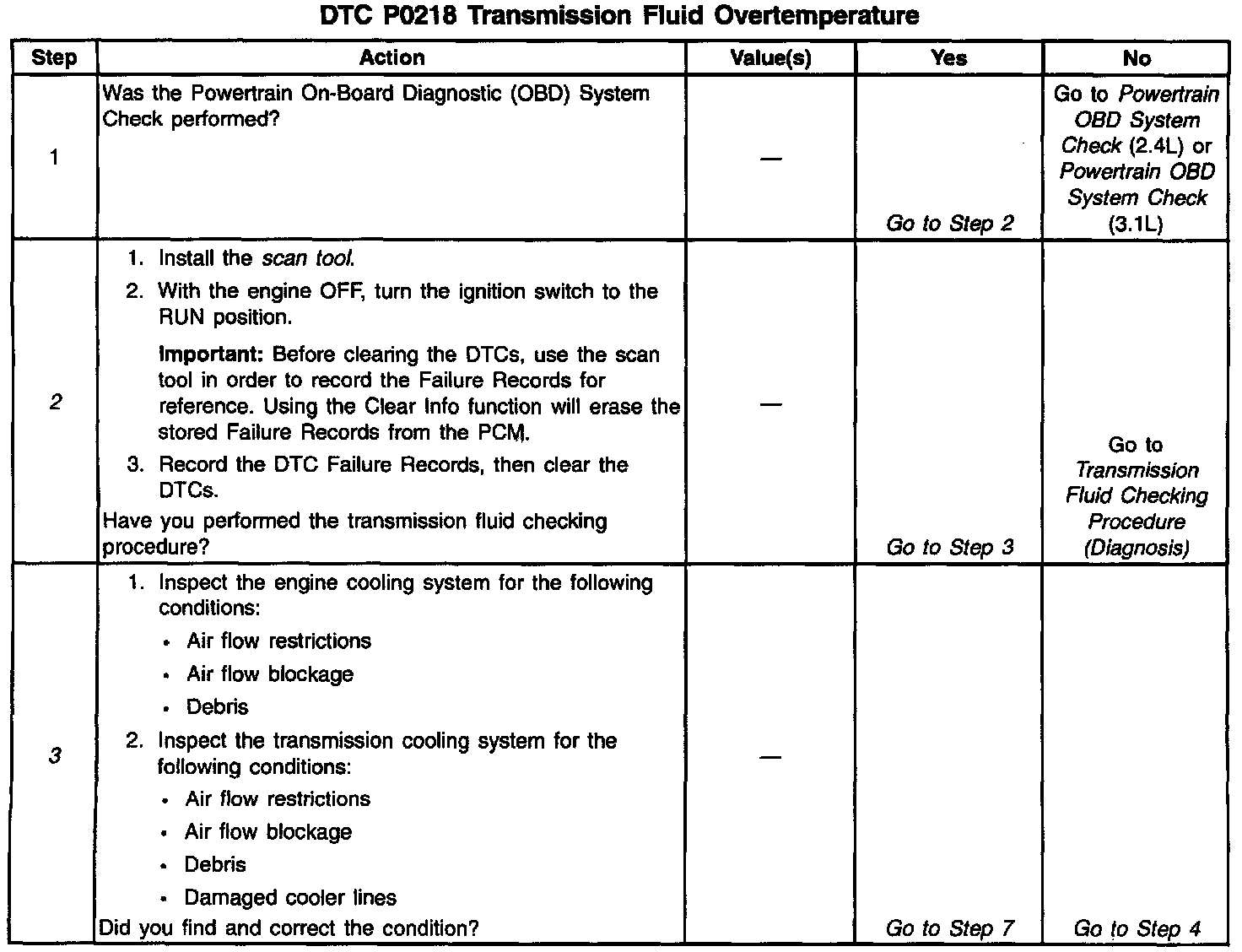 When the Powertrain Control Module (PCM) detects a high transmission fluid temperature (TFT) for a long period of time, then DTC P0218 sets. DTC P0218 is a type D DTC.
