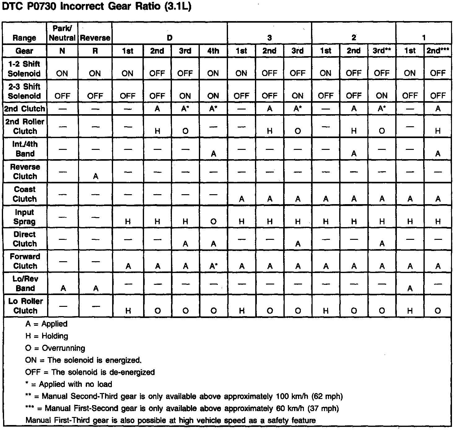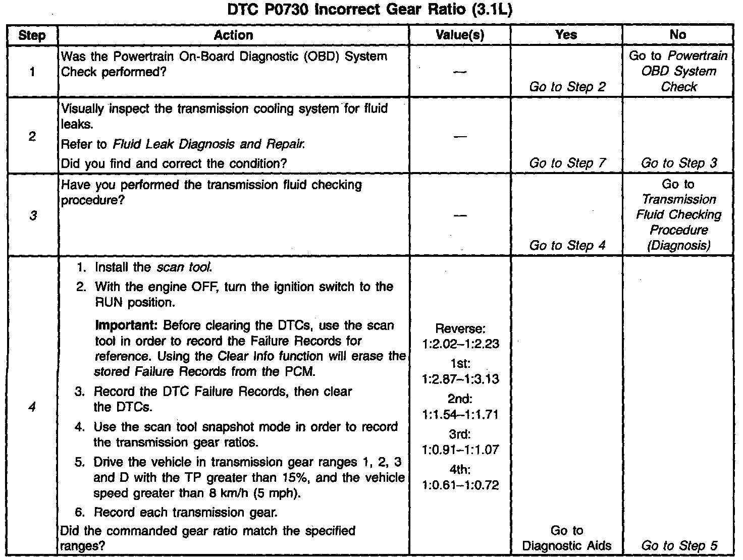 When the PCM detects an unknown transmission gear ratio, then DTC P0730 sets. DTC P0730 is a type D DTC.