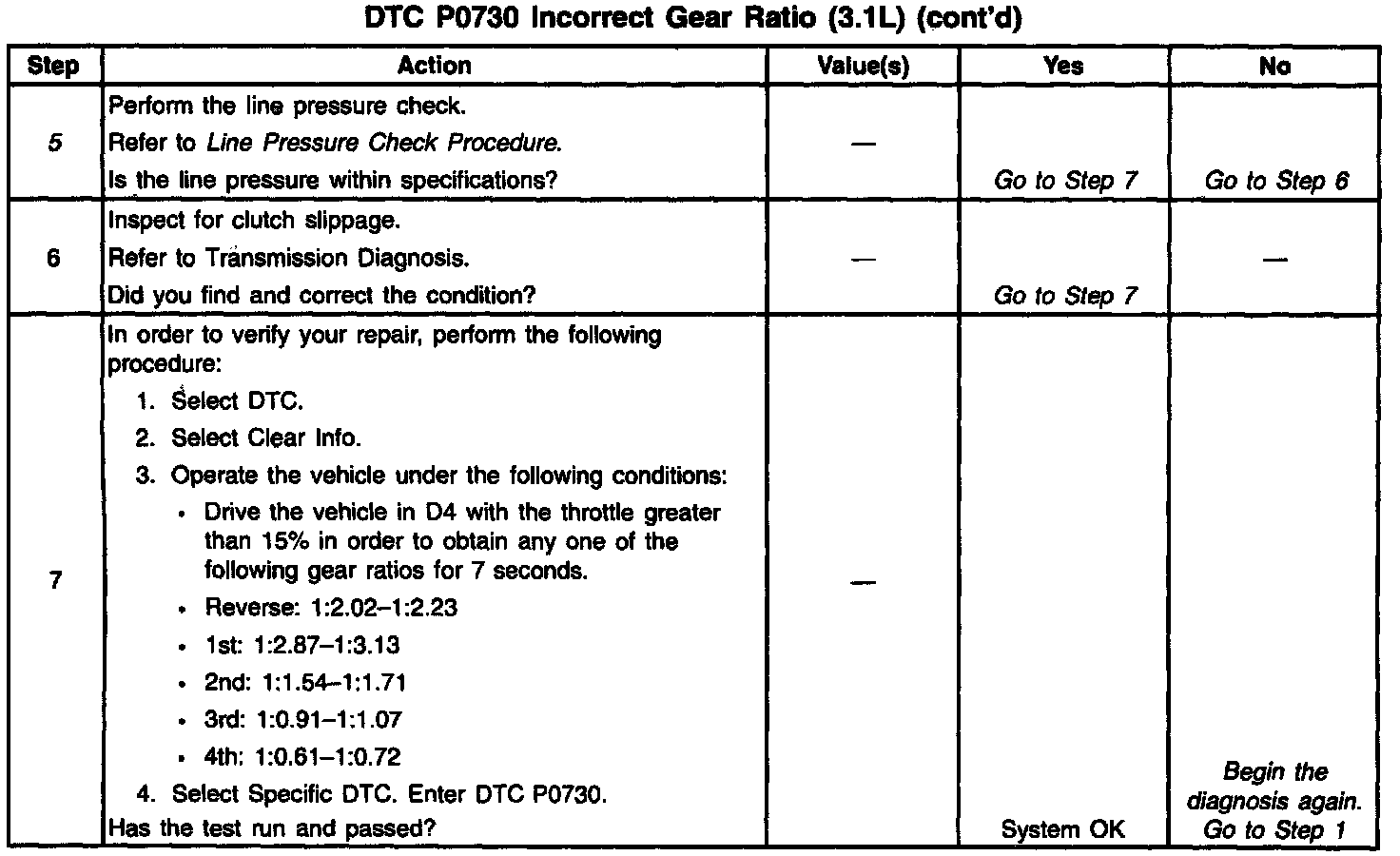 3. This step tests for low fluid level, which may cause slipping, and result in an incorrect gear ratio.