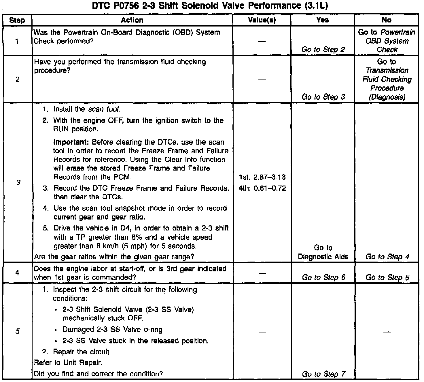 The Powertrain Control Module (PCM) monitors the actual gear ratio and compares the actual gear ratio with the commanded gear ratio. DTC P0756 sets under four conditions: