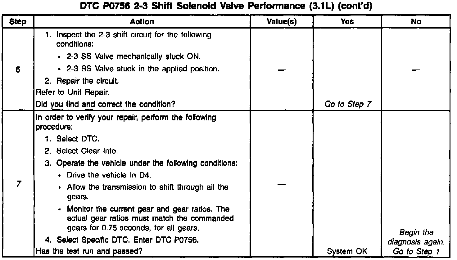 7. This step tests for a mechanical or hydraulic condition causing the 2-3 SS valve to be stuck ON, or the circuit to be applied.