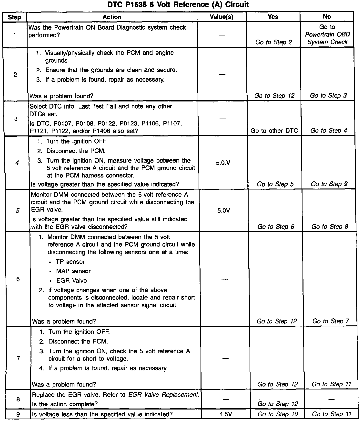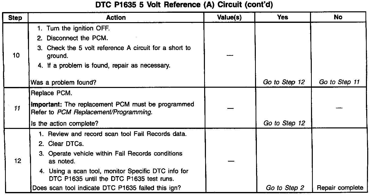 The PCM monitors the voltage on the 5 Volt Reference A circuit. If the voltage is out of tolerance, the PCM will set DTC P1635.