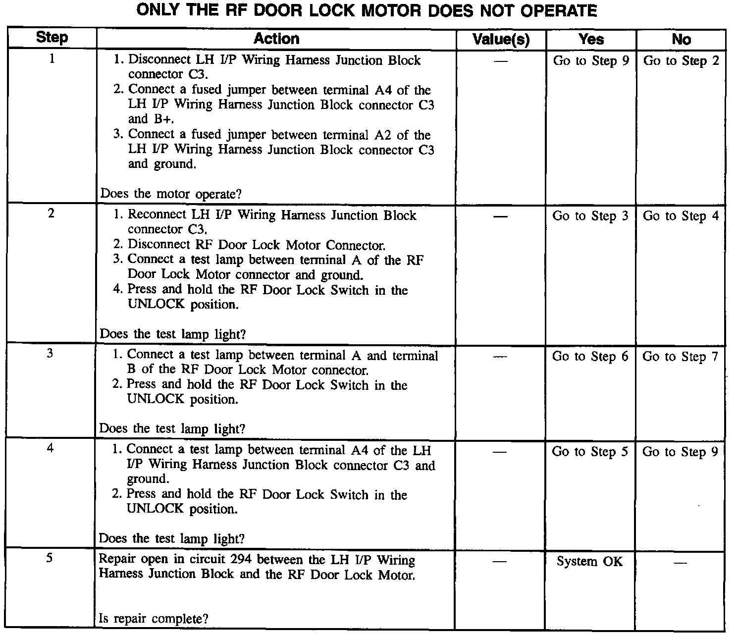 Only The RF Door Lock Motor Does Not Operate (Part 2 Of 2):