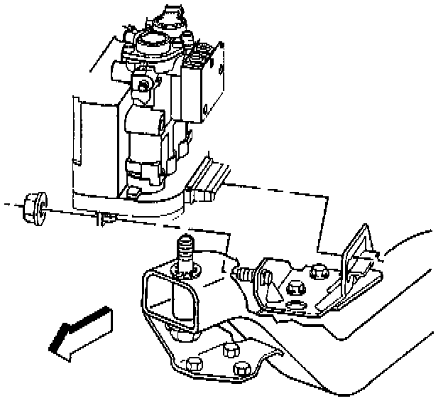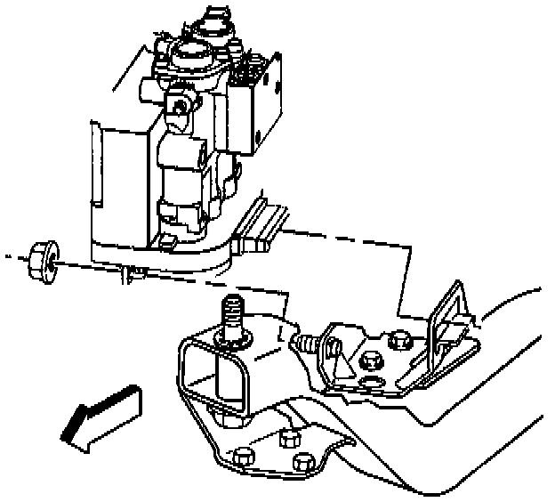 8. Remove the Hydraulic modulator assembly to bracket mounting nut.