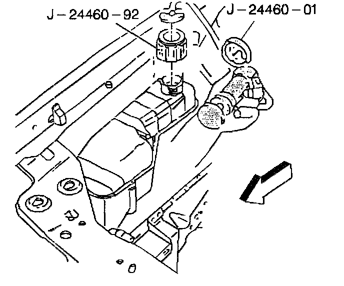 4. Attach the J 24460-92 and the J 24460-01 to the surge tank. Follow the instructions supplied with the J 241460-01.