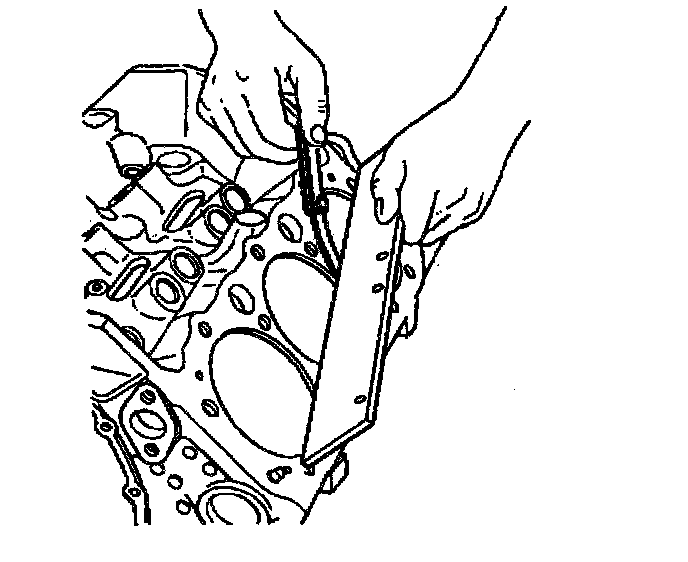 8. Use a straight edge and a feeler gage to check the deck surface for flatness. Carefully machine minor irregularities. Replace the block if more than 0.25 mm (0.010 inch) must be removed.
