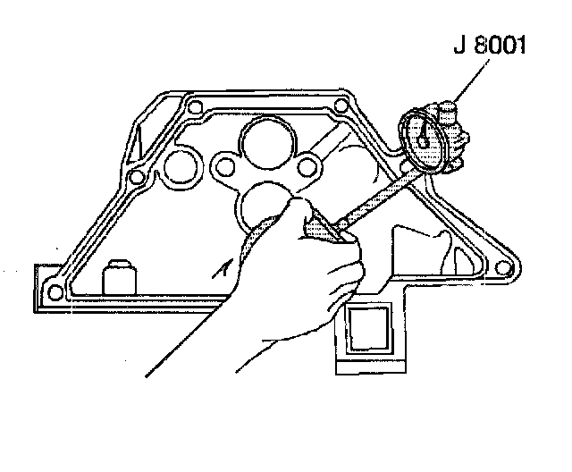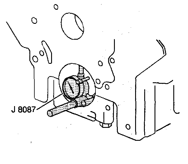 11.2. Hold the J 8001 gauge plate flat against the crankshaft flange.
