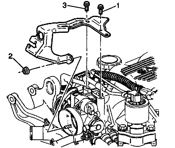 ^ Tighten the accelerator control cable bracket bolts and nut in sequence (1, 3, 2) to 10 Nm (89 inch lbs.).