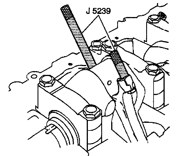 NOTICE: In order to prevent the possibility of rod bolt or bearing cap damage, the bearing caps may need to be tapped into position with a brass or leather mallet before the attaching nuts are installed. Do not use the attaching nuts to pull the bearing caps onto the rod. Failure to observe this information may result in damage to the rod bolt or the bearing cap.