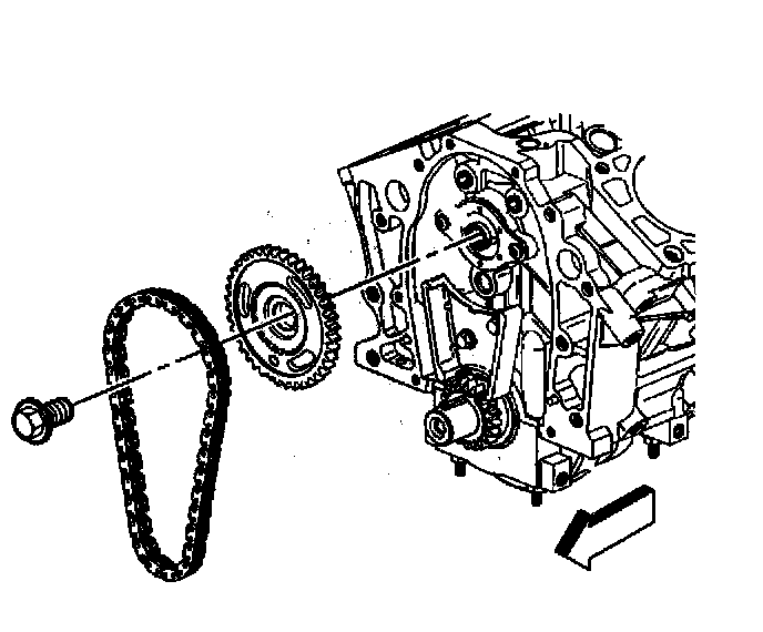 2. Remove the camshaft sprocket and timing chain.