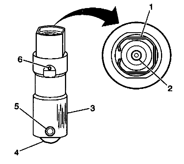 ^ Scuffed or worn sides (3). If the valve lifter shows wear, inspect the engine block lifter bores for wear or damage.
