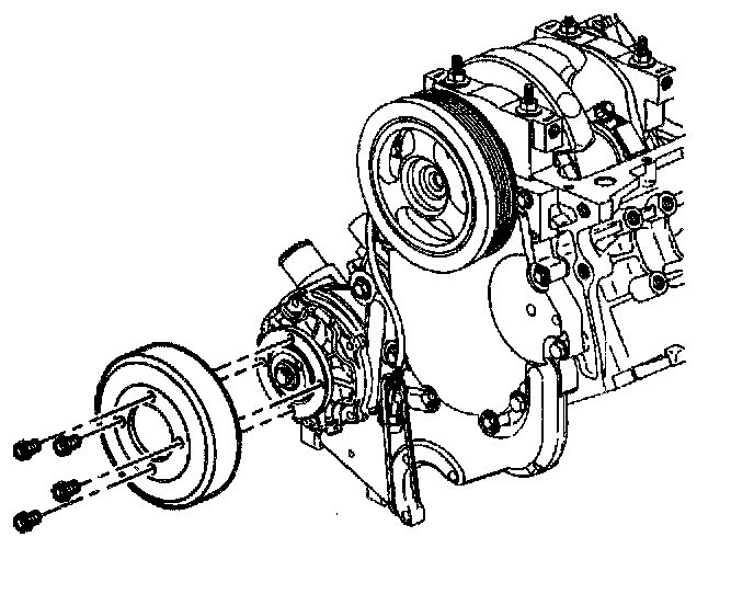 5. Install the water pump pulley bolts.