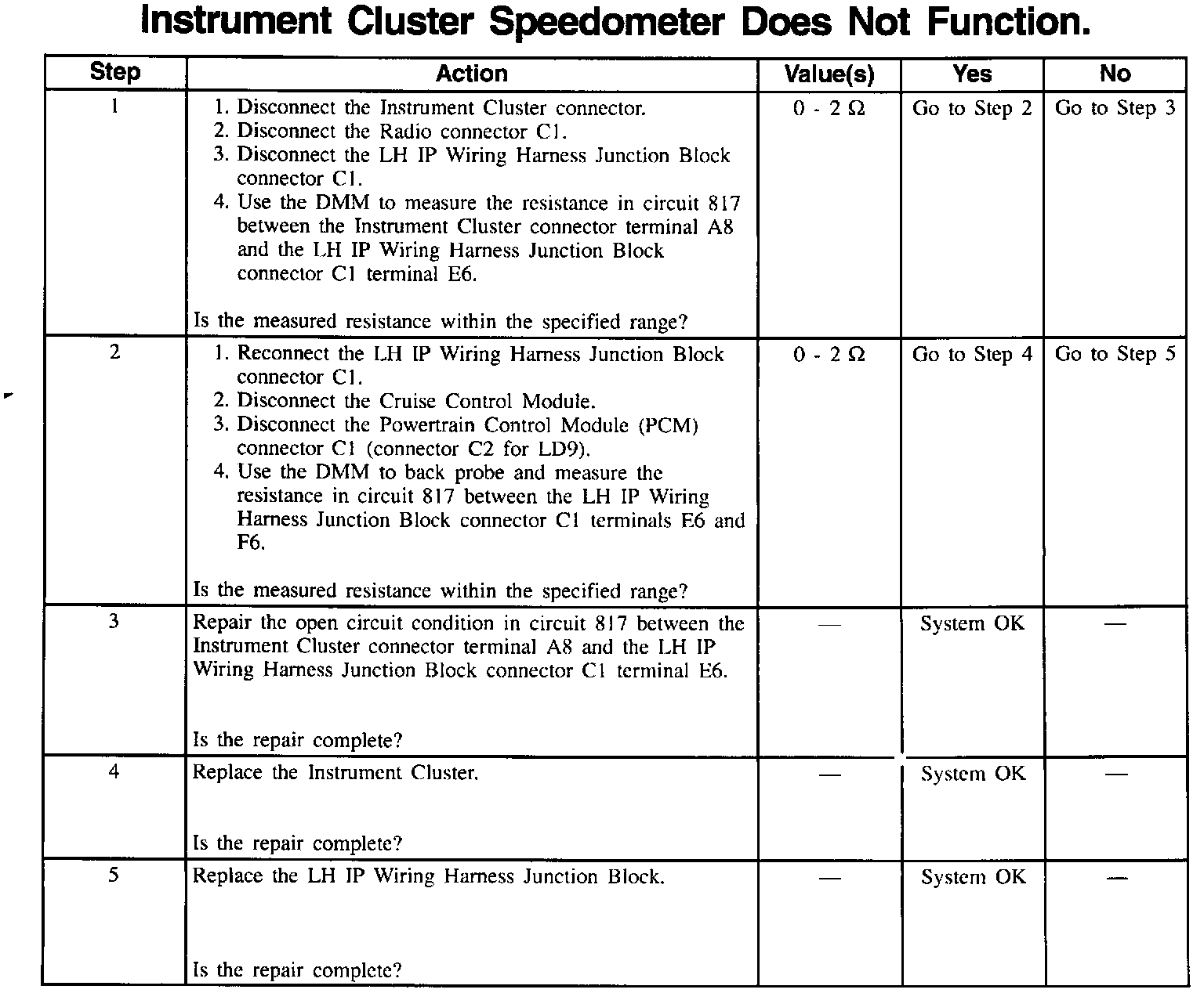 Instrument Cluster Speedometer Does Not Function