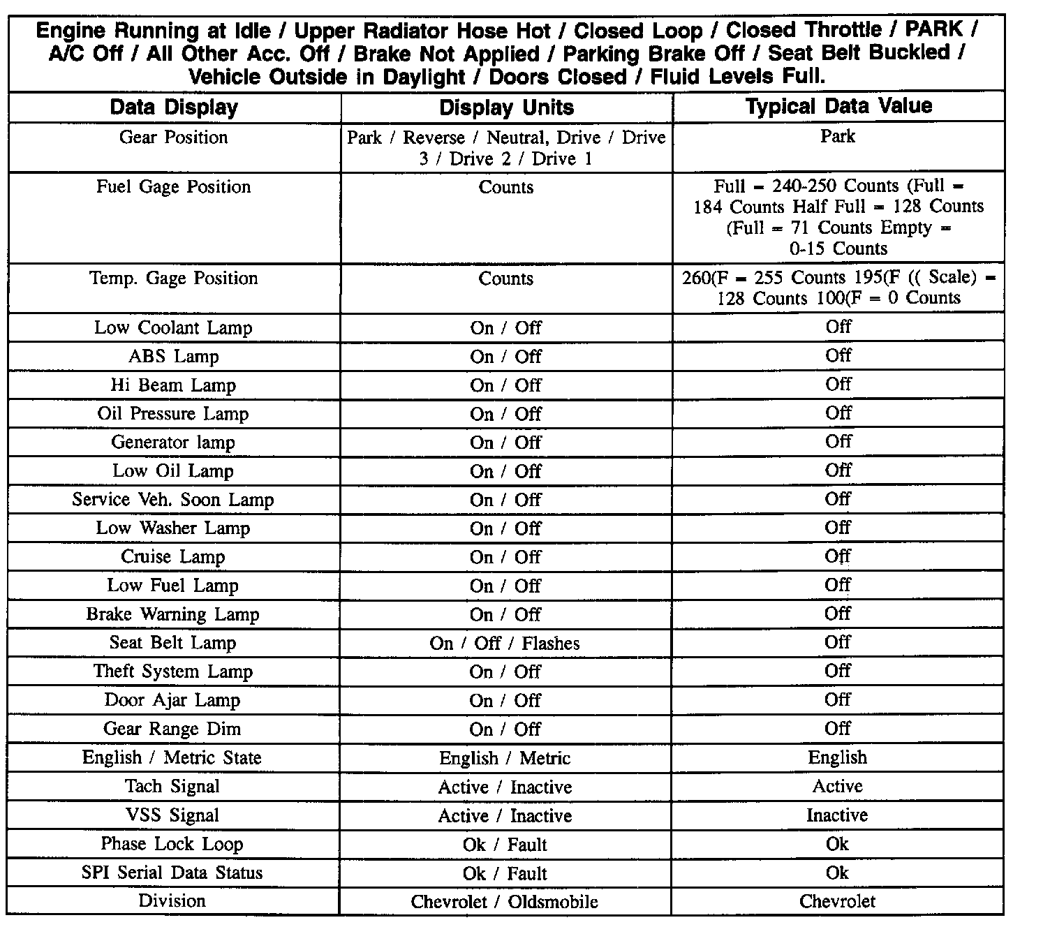 Typical Data Values