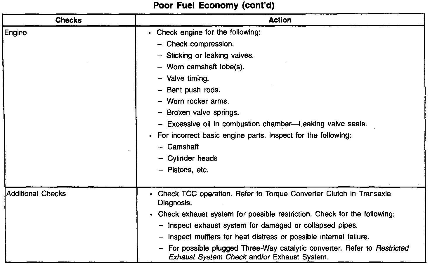 Poor Fuel Economy