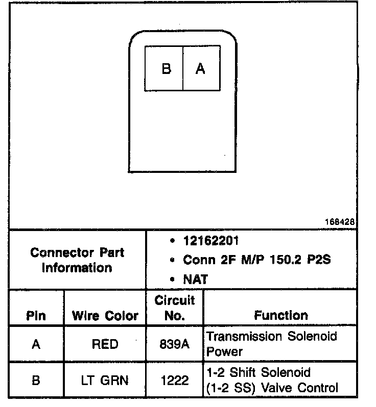 1-2 Shift Solenoid Valve Connector - Harness Side