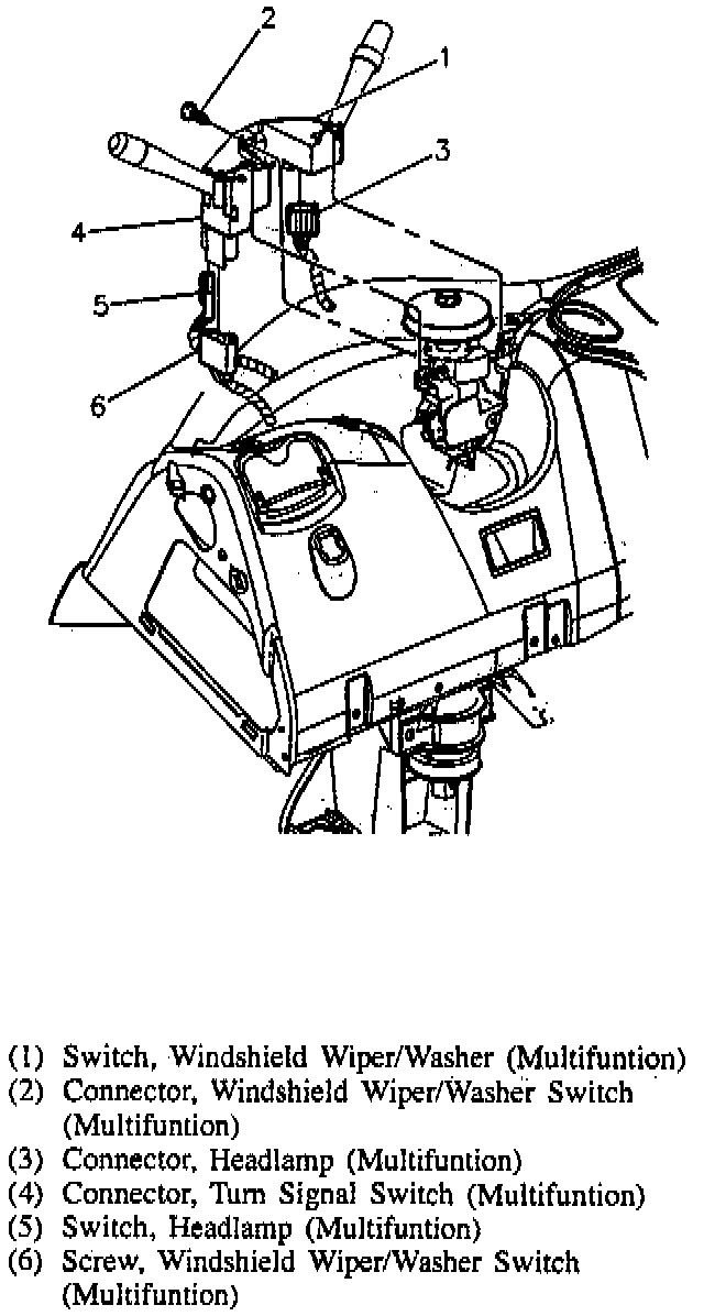 The left side of this switch has a lever which includes the headlamp, headlamp dimmer, and turn signal switches. On the right hand lever is the windshield wiper and washer functions.