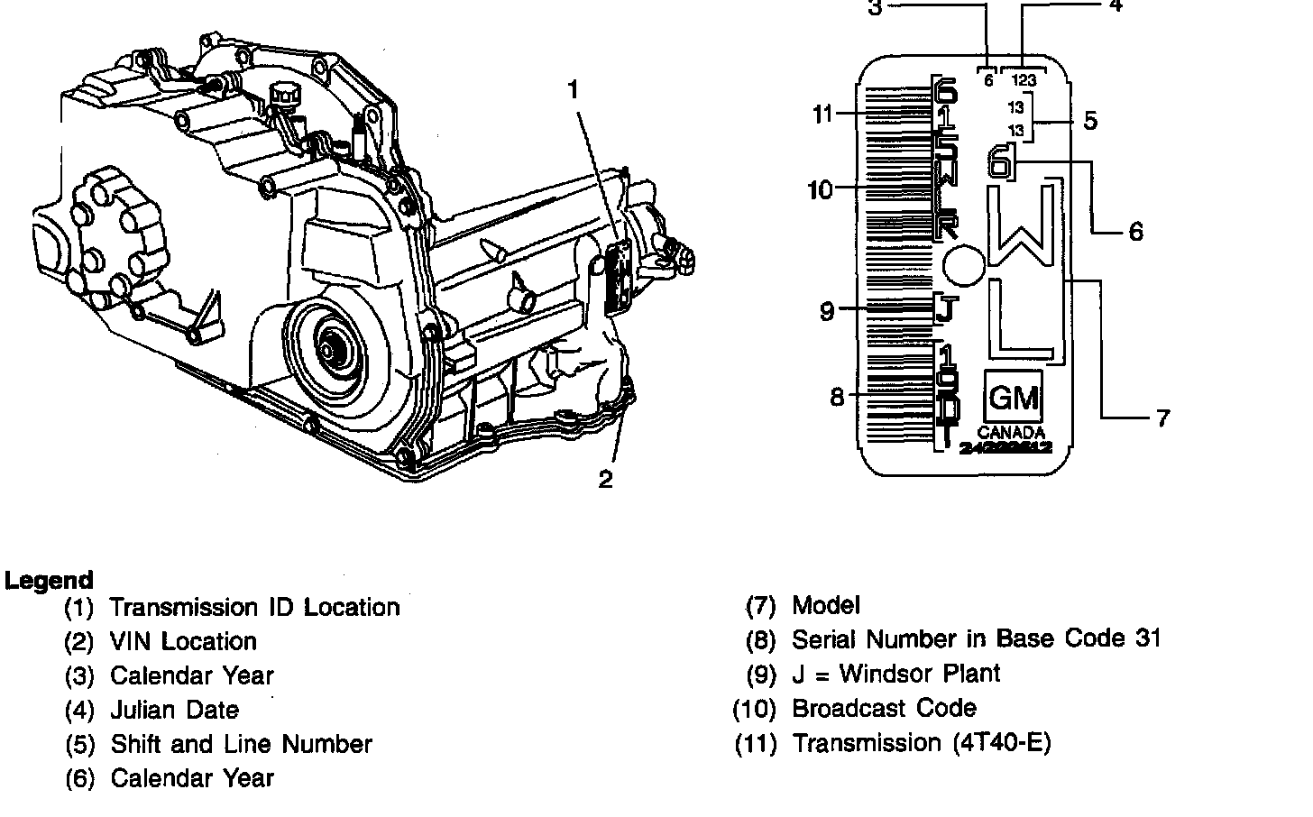 The information on the nameplate assists the technician in servicing the transmission and ordering replacement parts from a GM Parts Catalog.