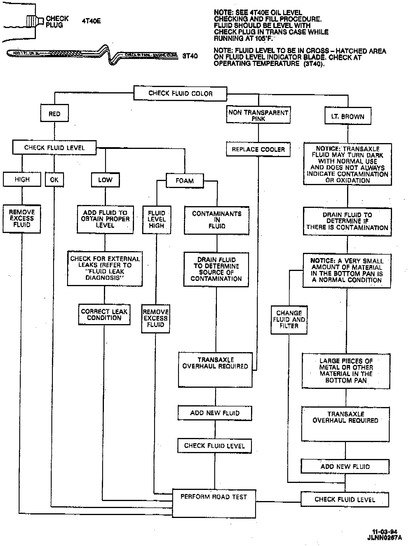 The fluid level should be checked when the transaxle is near Room temperature or at 40°C (104°F).