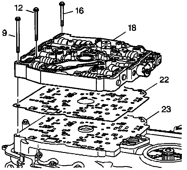 3. Remove and discard the valve body to spacer plate gasket (22).