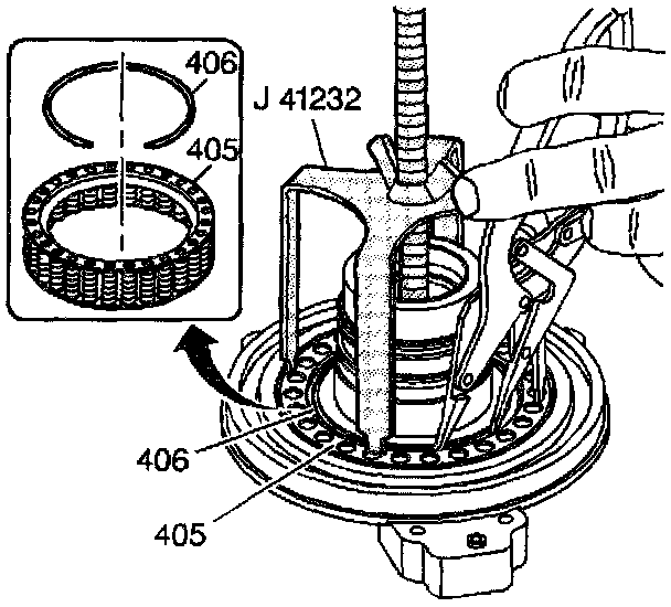 3. Compress the 2nd clutch spring and retainer assembly (405). Use the J 41232.