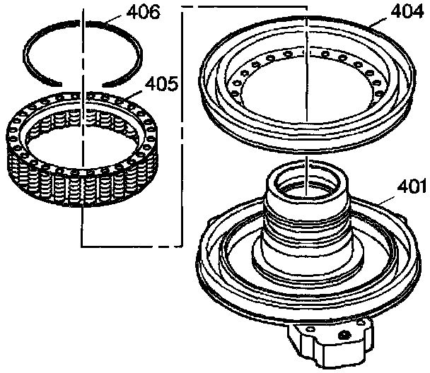 6. Remove the 2nd clutch spring and retainer assembly (405).