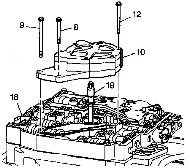 1. Install the oil pump shaft (19) into the control valve body assembly (18).