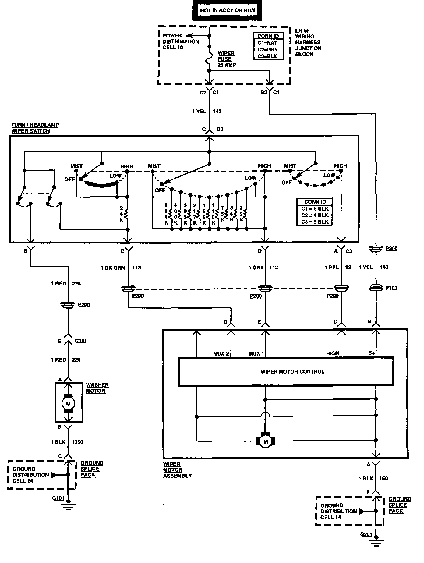 Wiper/Washer System Electrical Schematic: