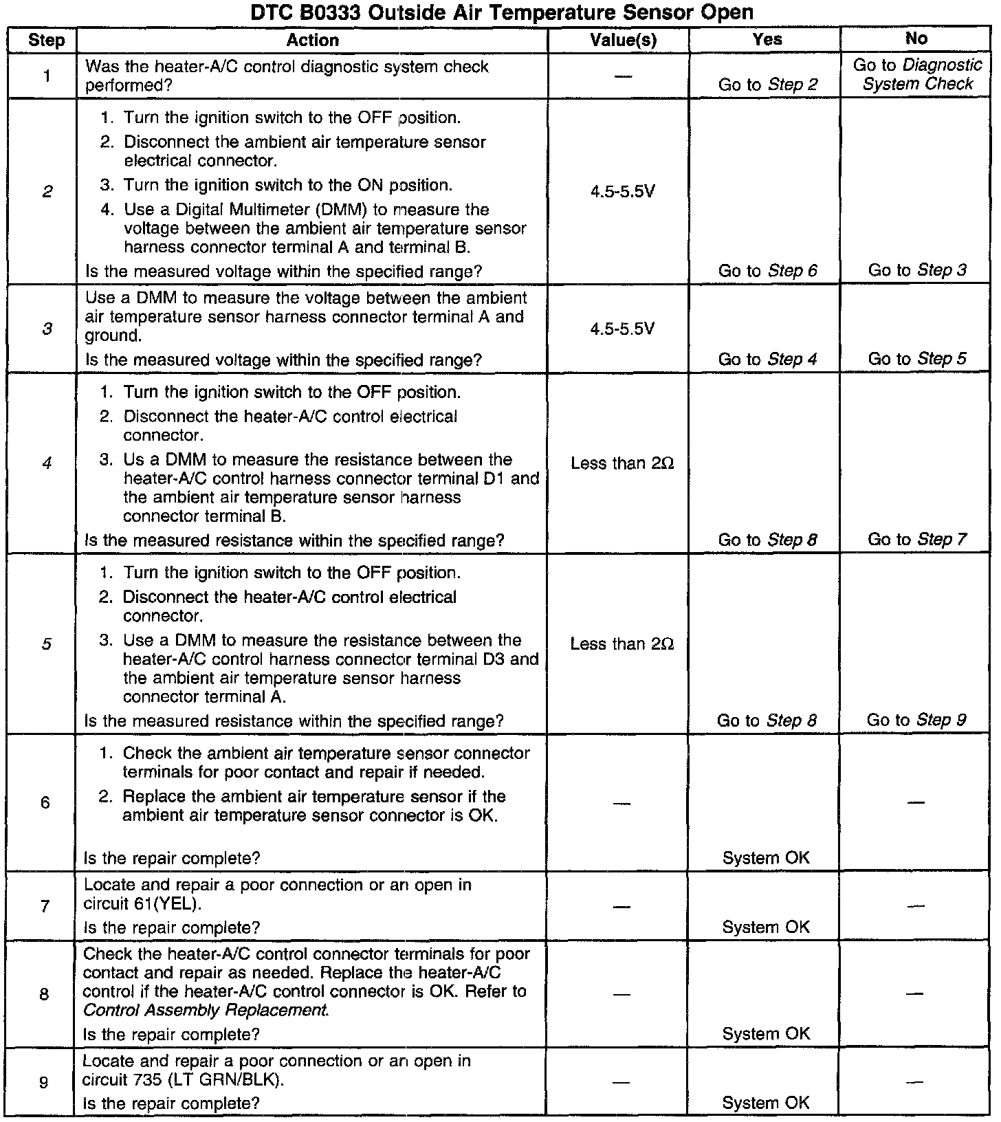 2. This step checks for proper voltage value at the ambient air temperature sensor.